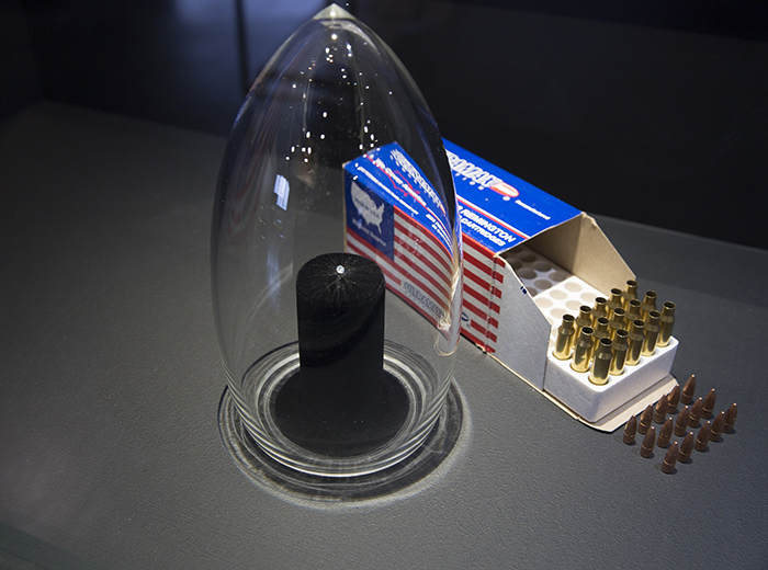 To prevent explosion during manufacture, gunpowder was neutralized in the chemistry laboratory of Dr. Justin Youngblood at the University of North Texas. The act of chemically neutralizing gunpowder across several months became the project’s heart, and the diamond a byproduct of this process, as documented in the video We Cover America.
